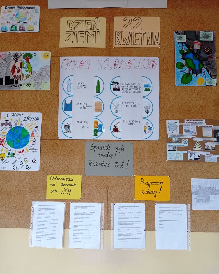 Uczniowie mogli zaprezentować swoje umiejętności, przygotowując się i startując w konkursie wiedzy o tematyce sozologiczno- ekologicznej lub/i próbując swoich sił- chwaląc się talentami plastycznymi. Wszystko po to, by zwrócić wzrok w kierunku naszej planety, która woła o pomoc!